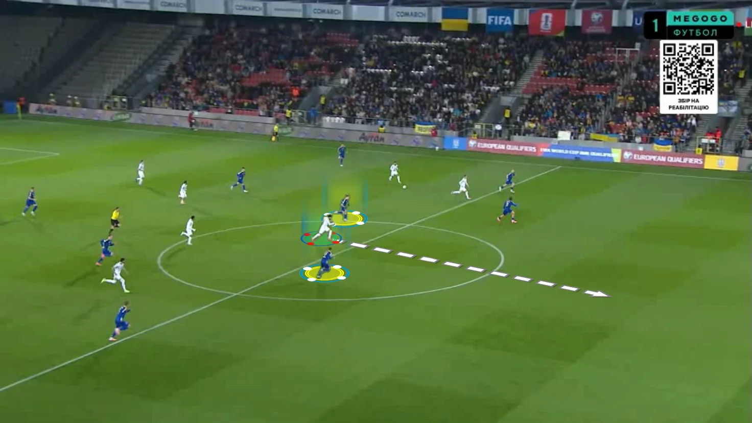 Шапаренко після провального перфомансу в грі без м'яча у Рейк'явіку присів на банку, а замість нього з'явився Очеретько. Він розташувався на позиції "вісімки" разом з Маліновським. Вони стали нашими легенями та м'язами як при відкриваннях на чужій третині, так і в пресингу / контрпресингу. Гуцуляк же розташувався на правому фланзі атаки, адже він дуже корисний при замиканні подач.