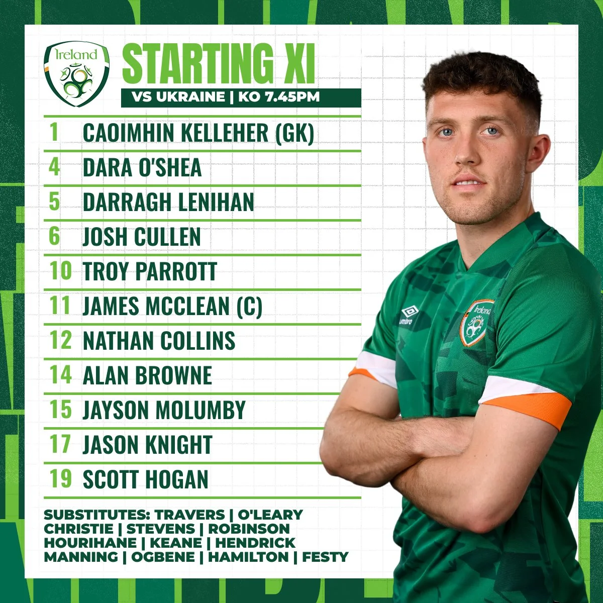 Ірландія: Келлехер – Макклін (к), Леніхен, О'Ші, Колінс – Моламбі, Каллен, Браун – Найт, Перротт, Хоган.