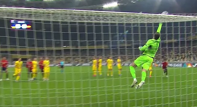 Перший удар Україна завдає на 25 хвилині. Ярмоленко подав з лівого краю, Миколенко слабко пробив кудись в бік воріт Де Хеа. Траоре просто знищує Соболя праворуч, Родріго скидає під удар Каналесу – перепасовка в нашому штрафному завершилася мінімальним промахом. Зубков сам собі голову закрутив фінтами, а потім артистично впав – і близко не пенальті, добре, що без жовтої за симуляцію. А хоча стривайте.