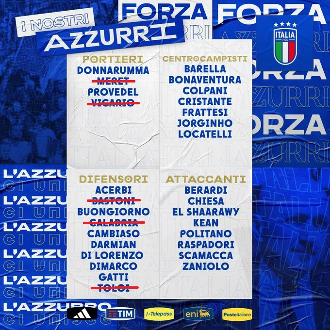 Замість травмованих викликали Карнесекі (голікпер Аталанти), Лаццарі (латераль Лаціо) й Манчіні (центрбек Роми)