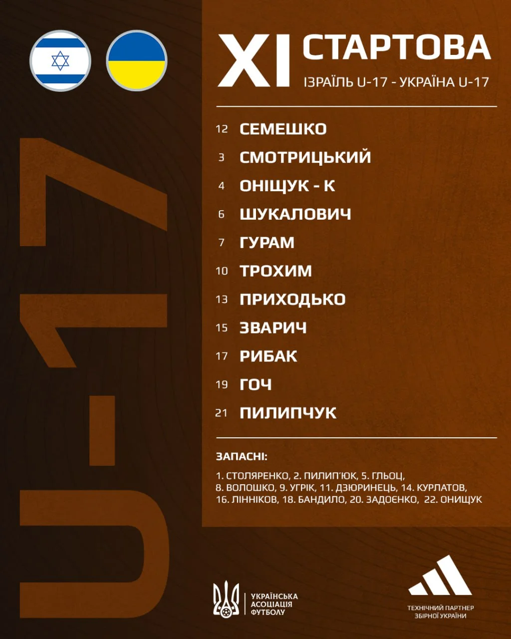 Україна – Ізраїль: стартові склади та безкоштовна онлайн-трансляція матчу збірних U-17 – сенсація Барселони в основі