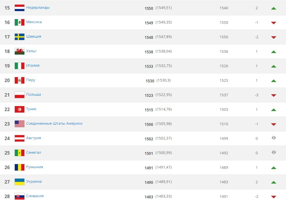 Відтепер національна команда посідає 27 місце, маючи у своєму активі 1490 залікових пунктів. Наші суперники в Лізі націй – збірна Словаччини та збірна Чехії – знаходяться на 28-ій і на 48-ій сходинках відповідно.