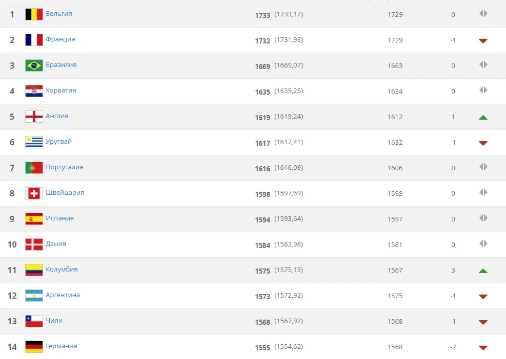 Перші 50 команд у рейтингу ФІФА: