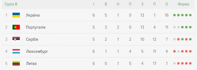 Кваліфікацію до чемпіонату Європи наша збірна розпочала саме виїзним матчем проти Португалії в Лісабоні – тоді команда Фернанду Сантуша володіла ініціативою, але збірна України змогла здобути прийнятний для себе результат у вигляді нульової нічиєї. До слова, та нічия стала єдиною для команди Шевченка в поточному євровідборі, адже наступні 5 матчів наша команда виграла із загальним рахунком 13:1. Лише Люксембург зміг вразити ворота збірної України, "суха" серія якої налічує вже більше 400 хвилин. До слова, наразі саме "синьо-жовті" можуть похизуватися найкращою обороною серед усіх команд Європи – лише Бельгія, як і Україна, в кваліфікації пропустила у власні ворота лише 1 гол.