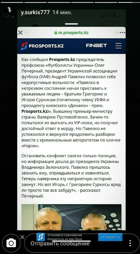 Зазначимо, що дочка Ігоря Суркіса Яна опублікувала в сторіс на своїй сторінці в Інстаграмі скріншот цієї новини.
