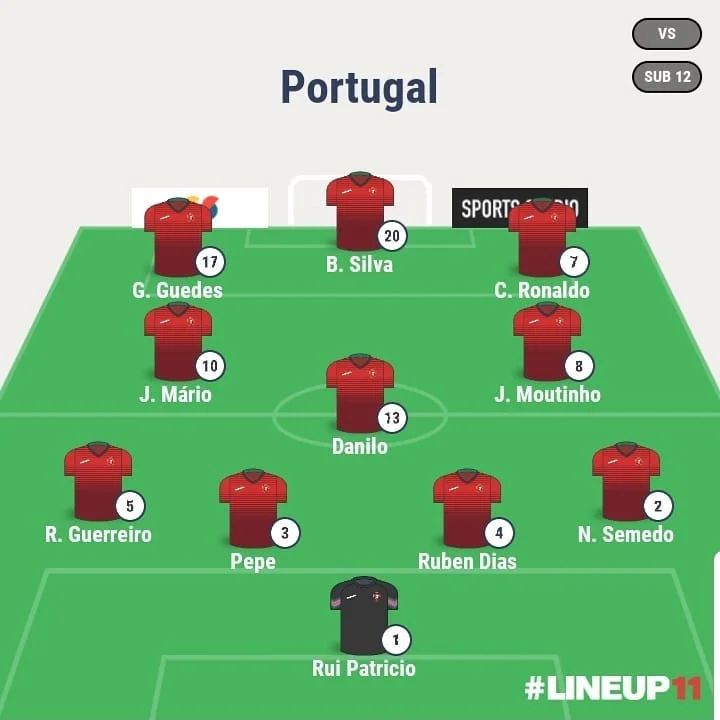 Португалія: Патрісіу – Семеду, Пепе, Рубен Діаш, Геррейру – Моутінью, Жоау Маріу, Данілу Перейра – Роналду (к), Бернарду Сілва, Гедеш