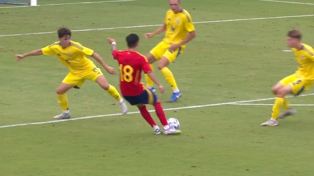 Україна після поразок від Англії та Нідерландів завершувала турнір битвою проти ще одного топа. Уже на 5 хвилині Іспанія відкрила рахунок. Голкіпер мадридського Реала Ілля Волошин ефектно витягнув удар головою після кутового, але на добиванні ніхто не думав накривати Коральєхо з Бетіса. Проблеми з виходом вперед через воротаря. Гарабажій надто довго підлаштовувався під пас Волошина, який миттєво потягнув дуже сильний удар іспанців. Згодом Ілля вже сам віддав не надто надійно, захисники підстрахували. Ще кілька добротних сейвів 18-річного кіпера.