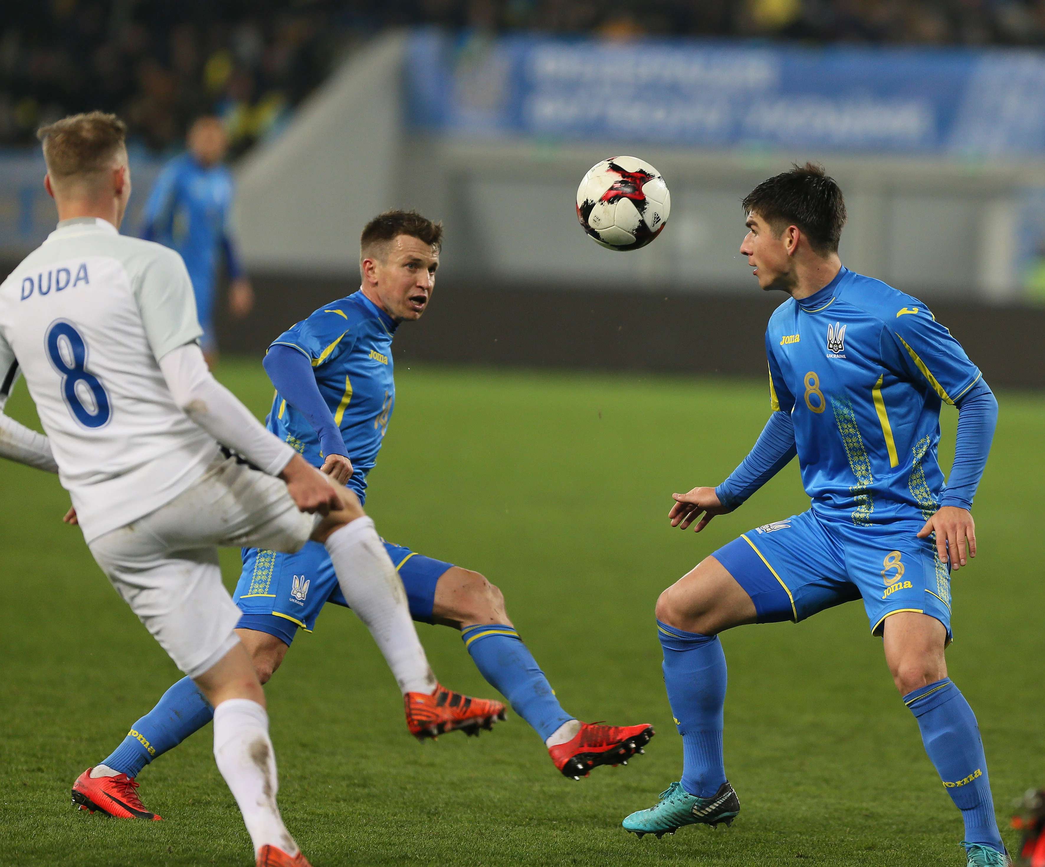 Україна: Пятов – Караваєв, Бурда, Ракицький, Матвієнко – Степаненко, Маліновський – Ярмоленко, Марлос, Коноплянка – Яремчук.