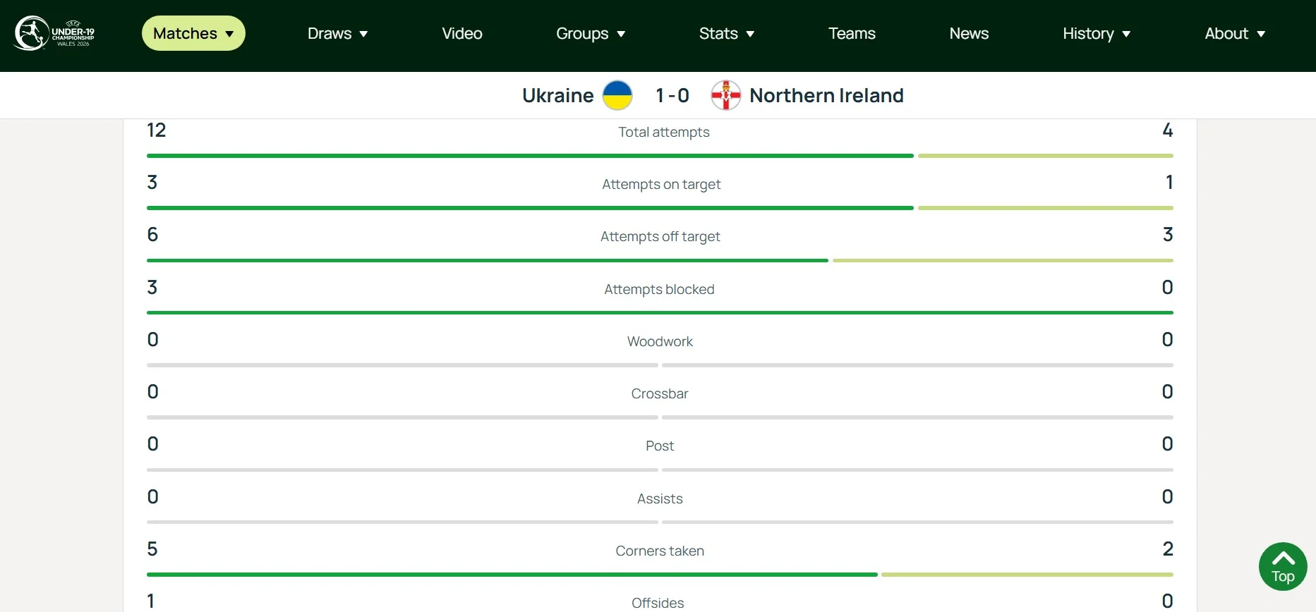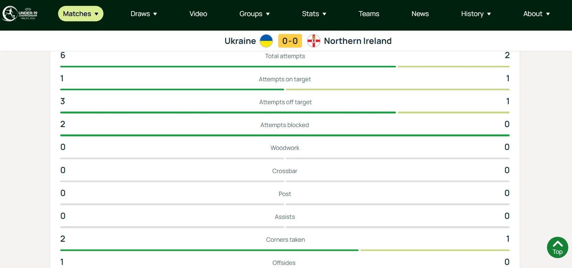 Уже в компенсований час українці дещо пожвавилися. Богданов не влучив у площину, спробу Малова заблокували, а удар Попова після кутового від Тютюнова парирував Джош Грейсі вже на 45+5. Домчак і воротар Вулверхемптона, який грає за клуб 6 англійської ліги в оренді, тільки по разу вступали в гру до перерви. Хоча з урахуванням ще одного заблокованого пострілу Богданова на 45+5 статистика ударів цілком на нашу користь – 6:2.