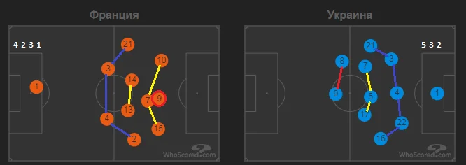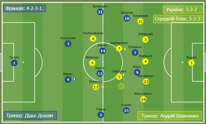 Головною геометричною фігурою українців у протистоянні на "Сен Дені" були трикутники, які утворювалися на флангах у позиційній обороні і були призначені передусім для нейтралізації технічних та швидких вінгерів збірної Франції – Мбаппе і Комана. Задум спрацював, латераль завжди мав підстраховку.