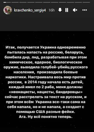 Ага. Ну все зрозуміло тепер", – з іронією написав Кравченко в Instagram.