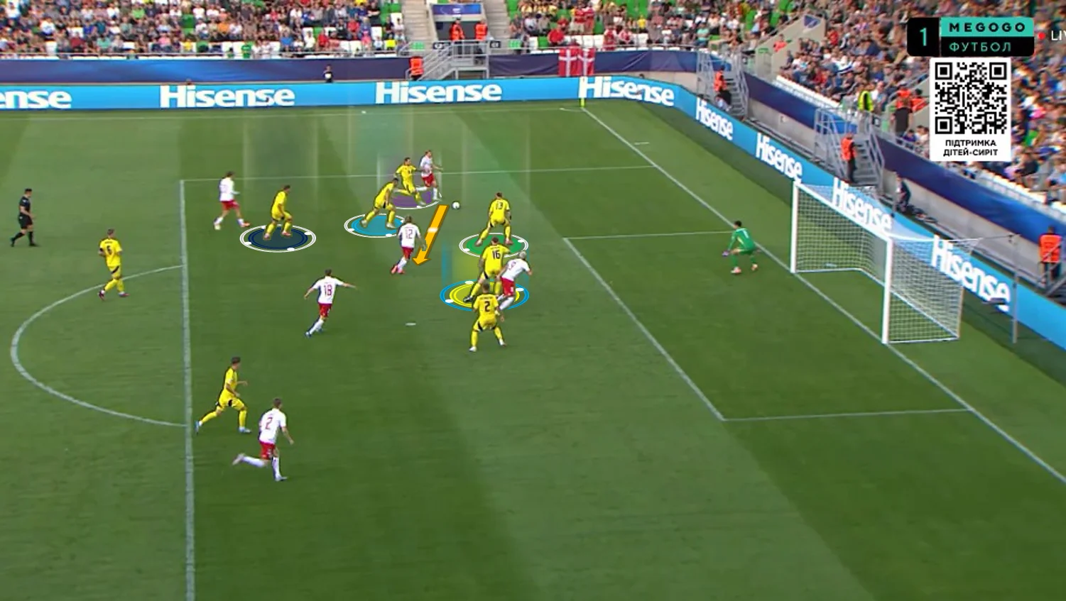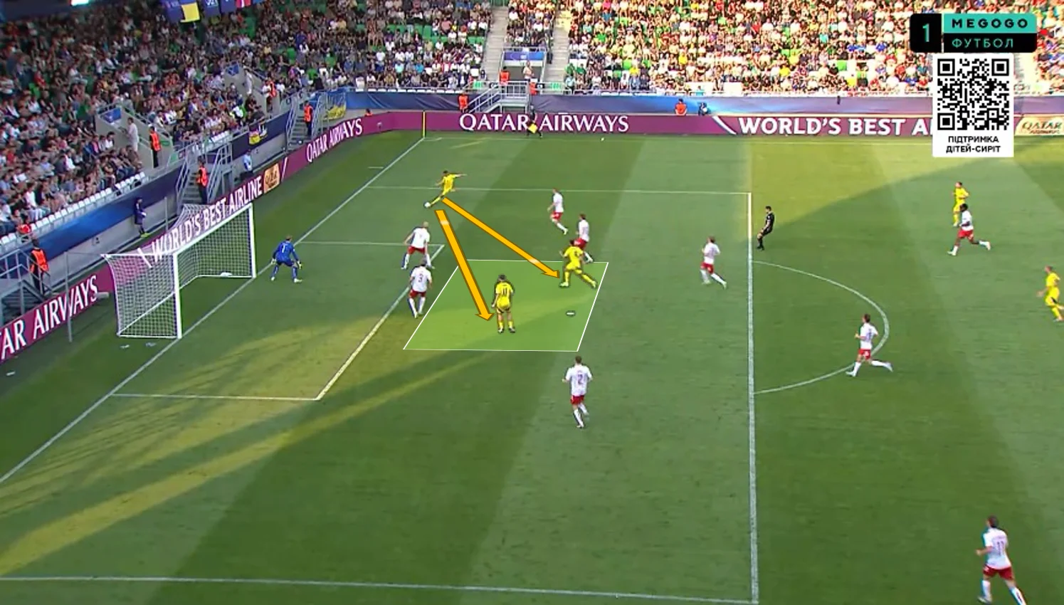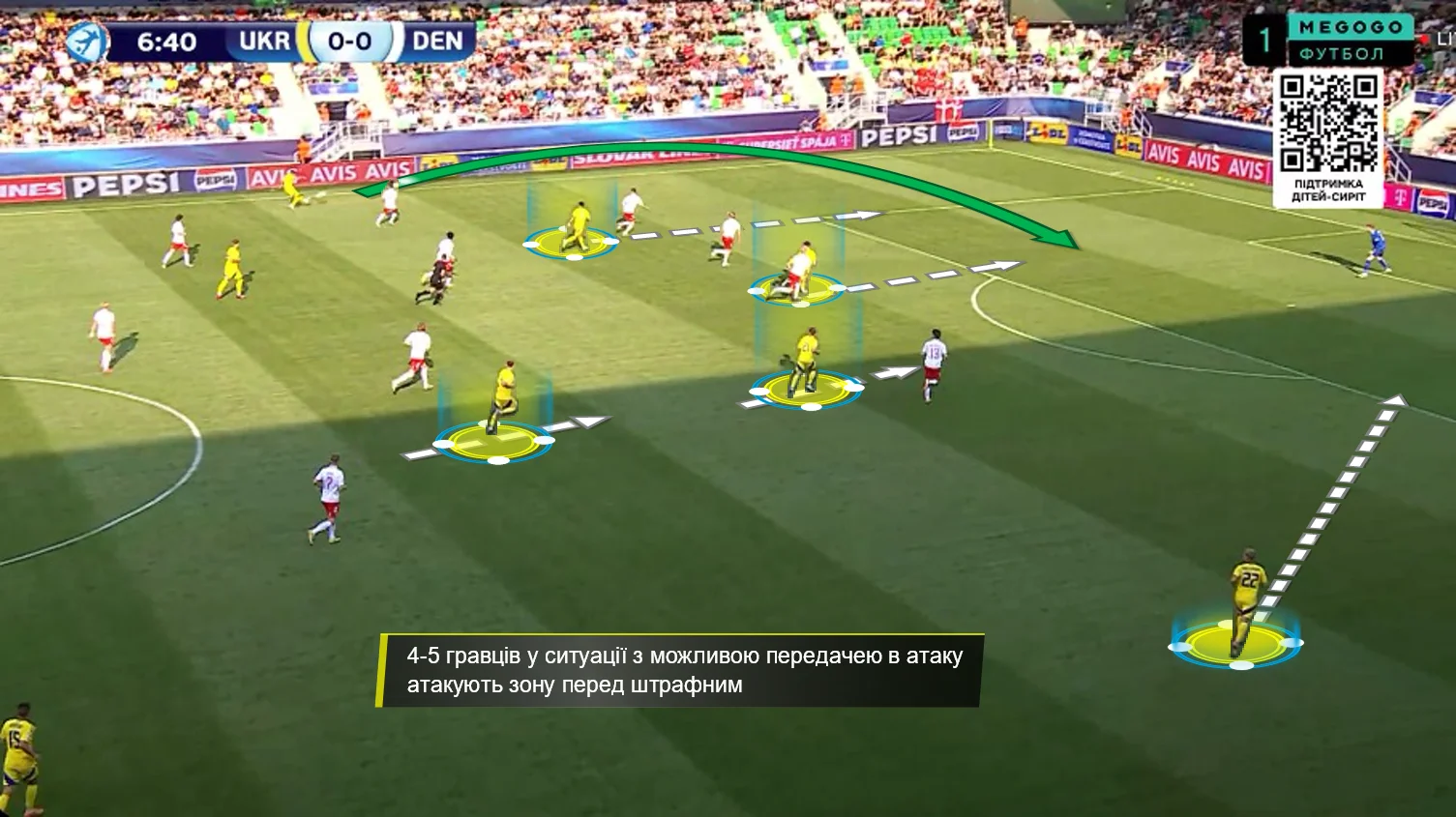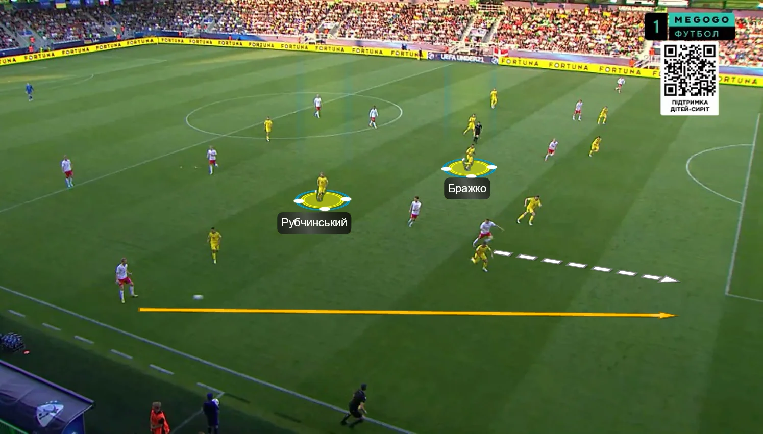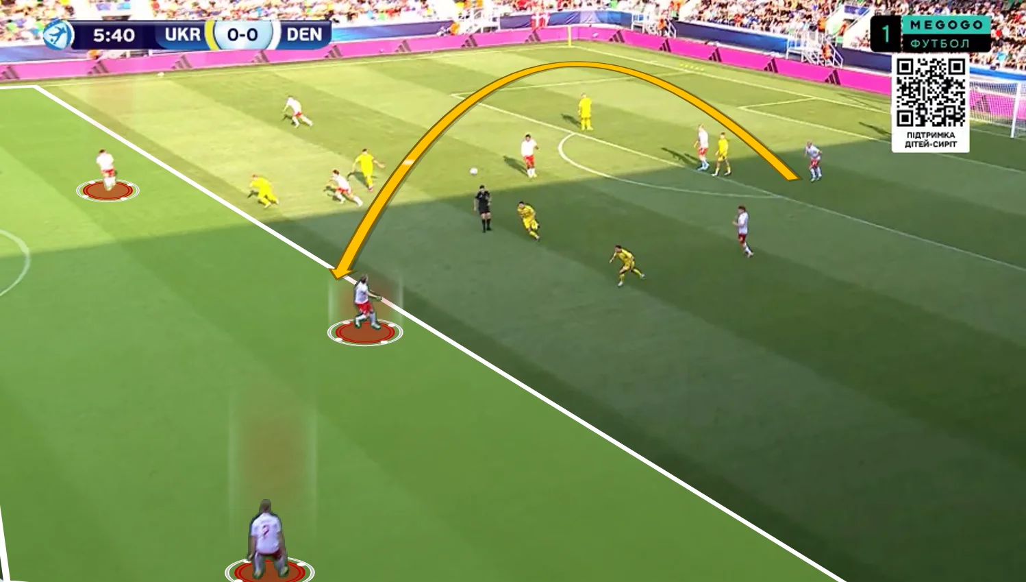 Перше, що впадало у вічі у грі нашої збірної – це активне використання сильних якостей центрбеків. Батагов і Козик розкидували точні діагоналі по флангах, де завжди створювалась ширина. Футболіст, який приймав такі переведення, часто мав продовження у вигляді передачі в глибину (тобто за спини на хід).
