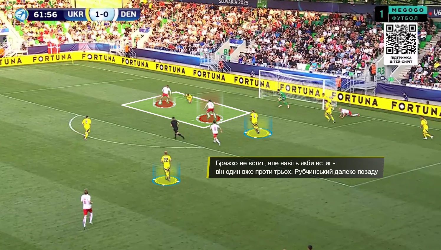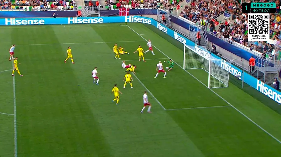 Більш прикрим є інший факт – всього за хвилину до третього пропущеного Україна могла добивати Данію. Ванат зачепився за винос і п'яткою скинув під удар В'юннику, однак Богдан з дистанції зарядив над поперечкою.
