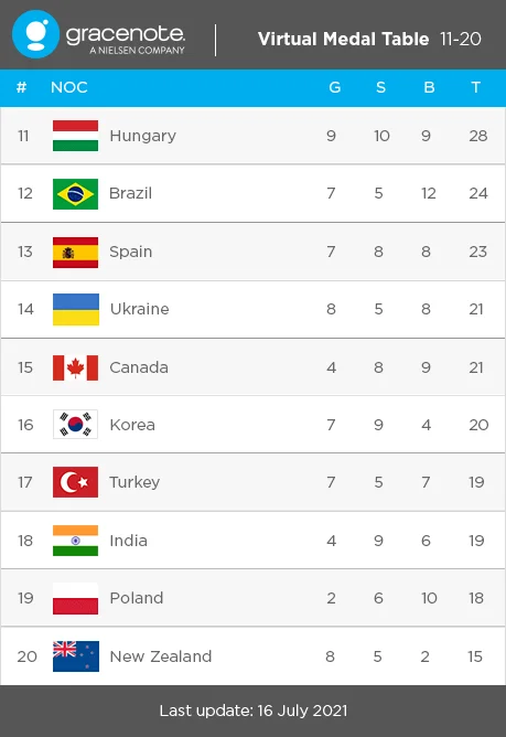 Компанія Gracenote поділилася власним прогнозом на медальний залік усіх країн-учасниць Олімпійських ігор в Токіо.