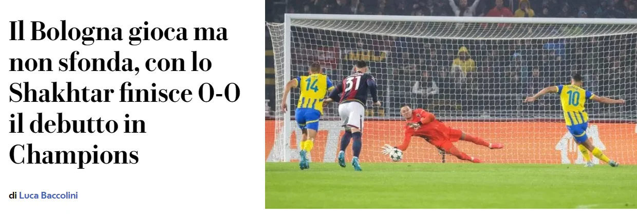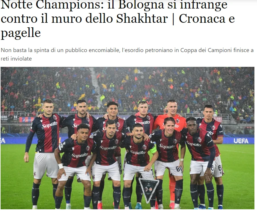 Болонья та Шахтар не забивали голів у прем'єрному матчі Ліги чемпіонів. Реакцію італійських ЗМІ читайте на "Футбол 24".