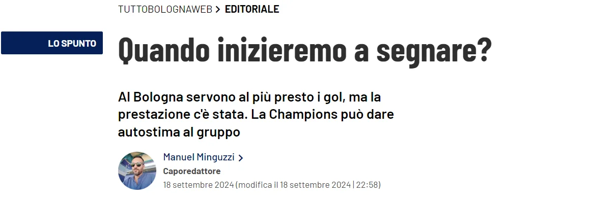 Банально, дуже банально, ви будете розчаровані, якщо вам здалося, що в цих рядках ви вловили та прочитали якусь глибоку думку, але насправді у грі Болоньї не вистачало лише одного: забитих м'ячів. Звісно, Скорупскі виручив усіх, Святий Лукаш, але Болонья добре атакувала протягом усього матчу, заспокоївшись лише в останні двадцять хвилин, коли важке поле зробило рахунок. Шанси були, і цього разу – з хорошими ударами. А не як у Комо, де була якась випадковість, але ця команда мала розблокуватися, виграти кілька матчів, щоб зняти тягар зі своєї спини.