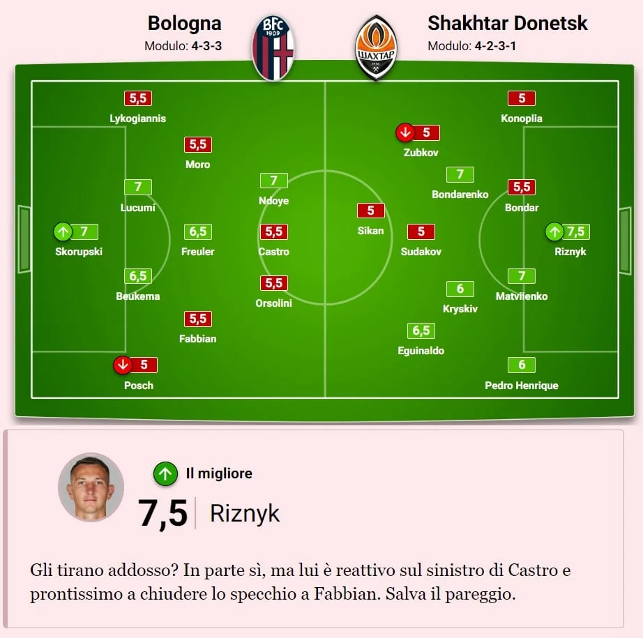 La Gazzetta dello Sport: Скорупскі рятує від пенальті, Фаббіан втрачає шанс, початок Ліги чемпіонів для Болоньї – 0:0