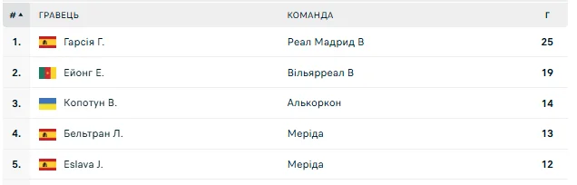 Українець Владислав Копотун вийшов на третє місце у рейтингу бомбардирів третього іспанського дивізіону завдяки своєму голу в 38-му турі проти Севільї B.