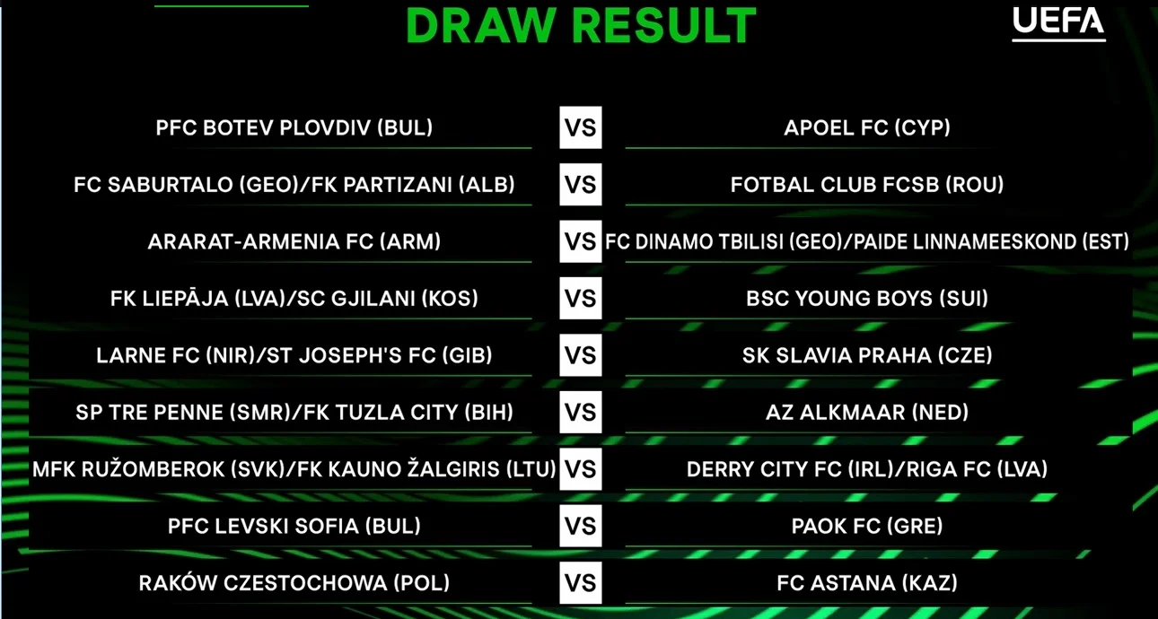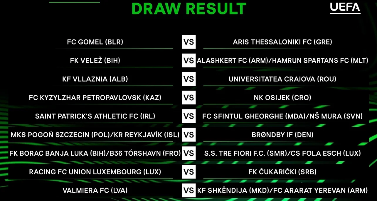 В Будинку європейського футболу у Ньоні відбулось жеребкування 2-го кваліфікаційного раунду Ліги конференцій.