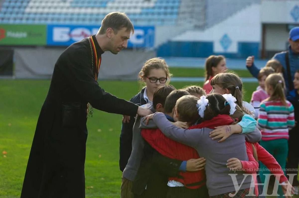 На столичному стадіоні "Динамо" відбувся "Матч миру та єднання", в якому між собою зіграли священики різних конфесій та діти-біженці.