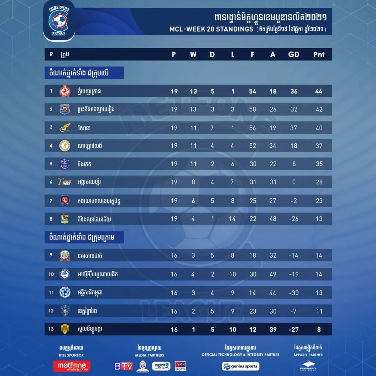 В елітному дивізіоні чемпіонату Камбоджі завершився регулярний сезон. Золоті медалі здобув Пномпень Краун, для якого це сьоме чемпіонство в історії. Ця команда була грізною силою у першій половині десятих, але з моменту попереднього тріумфу минуло шість років.