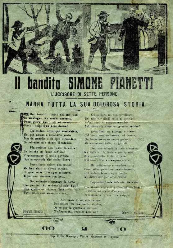 "Вчинити як П'янетті" – одна з найпоширеніших приказок мешканців Ломбардії у відчайдушні часи: чи то під час кризи, безробіття, чи від недовіри до інститутів. Вона означає дати волю своєму гніву і виправити ситуацію найрадикальнішим способом – убивством. На початку XX століття місцевий житель Сімоне П'янетті таким чином помстився багатьом своїм недоброзичливцям і став національним героєм. Більшість жителів Ломбардії вважають його "місцевим Робіном Гудом" – недарма відразу після його втечі на вулицях дрібних містечок навколо Бергамо почали з'являтися фрази "Хай живе П'янетті! Він потрібен кожному місту".