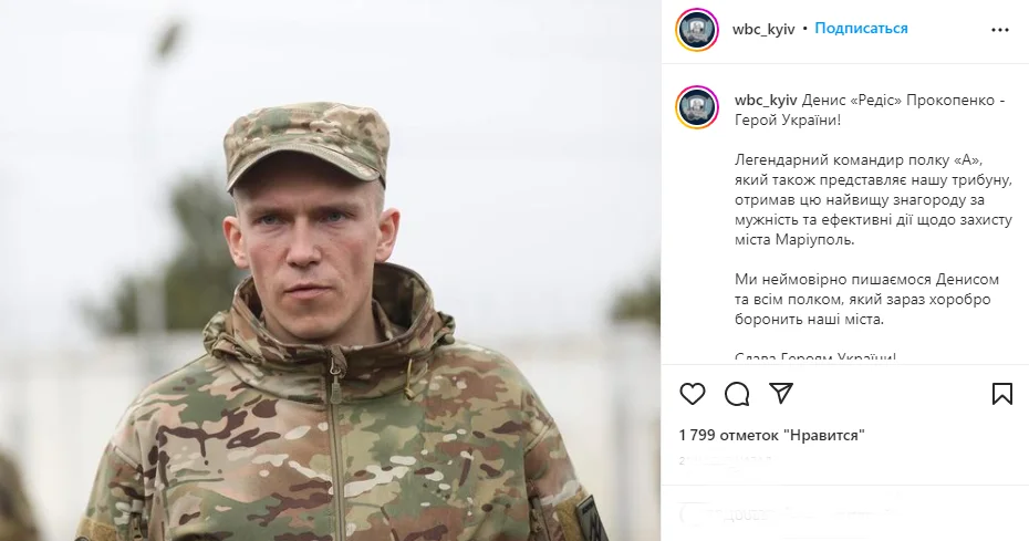 "Денис "Редіс" Прокопенко – Герой України! Легендарний командир полку "А", який також представляє нашу трибуну, отримав цю найвищу нагороду за мужність та ефективні дії щодо захисту міста Маріуполь.