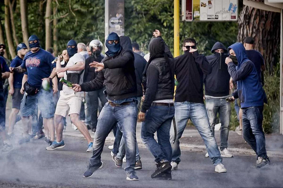 Повідомляється, що італійські фанати були у масках та з кийками у руках.