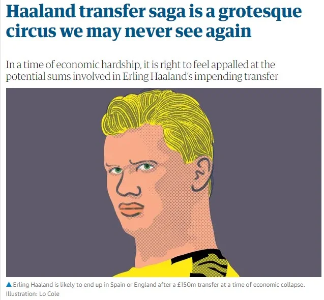 "Гротескний цирк, який ми можемо більше ніколи не побачити", – легендарний The Guardian не підбирає слів. Мадрид, Барселона, Манчестер. Маршрут, за яким батько та агент їздили "продавати" Холанда на початку місяця, здавався якимсь першоквітневим жартом. Як і сума його трансферу. Авторитетний The Athletic пише, що 400 мільйонів фунтів за трансферні права і 5 років обслуговування норвежця – цілком реальна сума. Принаймні саме так ситуацію бачить його найближче оточення. Одна чиста зарплата у 30 млн річних, не враховуючи витрат майбутнього клубу на податки (50 млн брутто), чого варта! Словом, весь Ньюкасл, стабільний клуб АПЛ, який вічно продають, можна придбати значно дешевше.