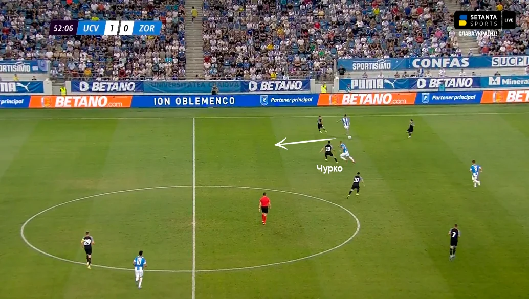 Чурко за природою є атакувальним хавом, а Булеца в системі Зорі грає від відкривань між лініями, тож ефективність тиску Крайови на центр поля була фантастичною.