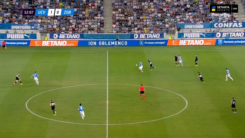 Універсітатя зрозуміла все правильно – якщо давати Зорі грати на м'ячі, то все завершиться катастрофою. Румуни зробили усе для того, щоб не дати нашому колективу розвернутись, видихнути, озирнутись. Постійний тиск, відсутність часу, купа єдиноборств, перевантаження ключових зон – усе це працювало проти сильних боків підопічних Патріка фон Леувена, але даною тактикою можна було маніпулювати.