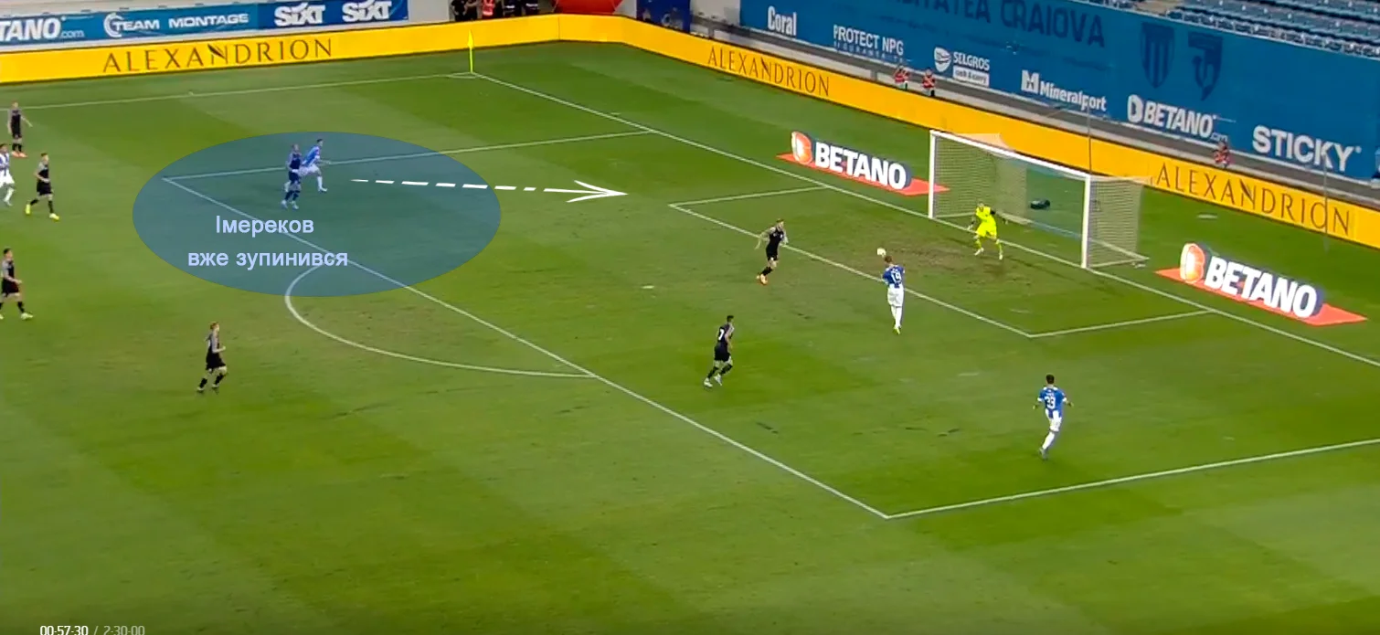 Звісно, в цій ситуації виникають питання до всієї структури пресингу луганців, але профільний опорник з меншою вірогідністю допустив би цей прорив. І знову ж таки – нічого б не сталося, якби Іван не зміг легко втекти по флангу й хитнути Батагова перед фатальним кросом.