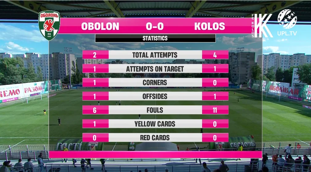 Потім команди обмінялися хорошими моментами. Краснопір з кількох метрів головою розстрілював Фесюна, але півфіналіст молодіжного Євро-2023 зреагував. Ймовірно, Колос тому відпустив багаторічного стража воріт Волинця у СК Дніпро-1. Кіпер Оболоні Федорівський також не дрімав – парирував сильний удар Мякушка по центру. На боці "пивоварів" була і стійка, яка в середині тайму прийняла на себе дещо незграбний удар Демченка.