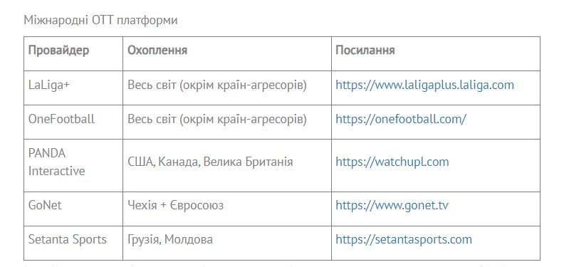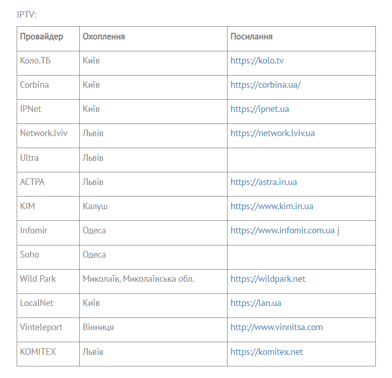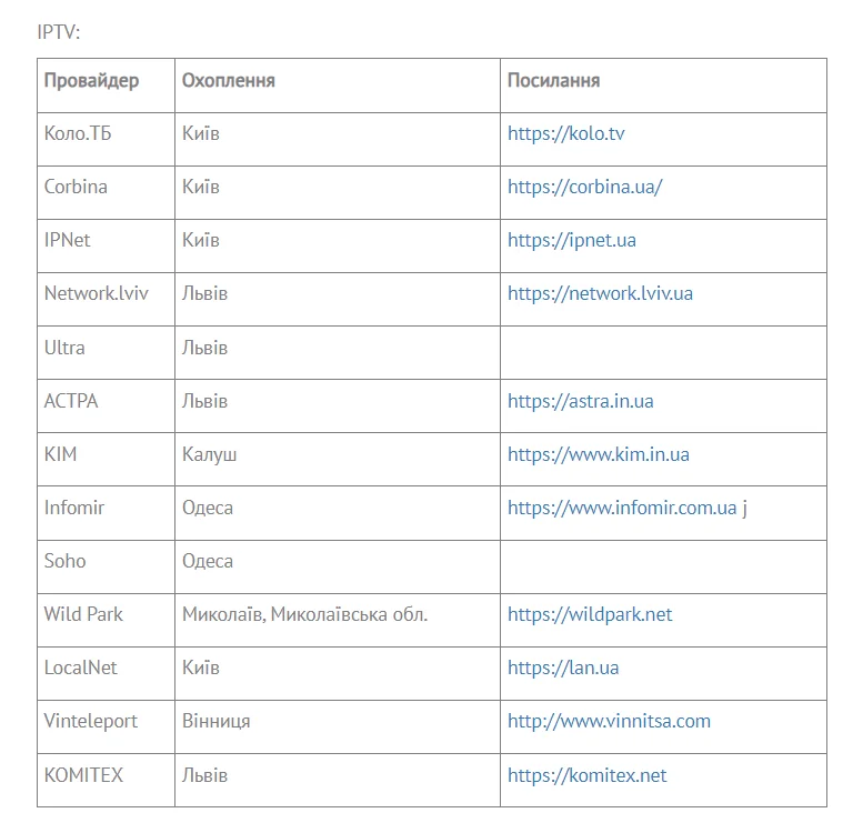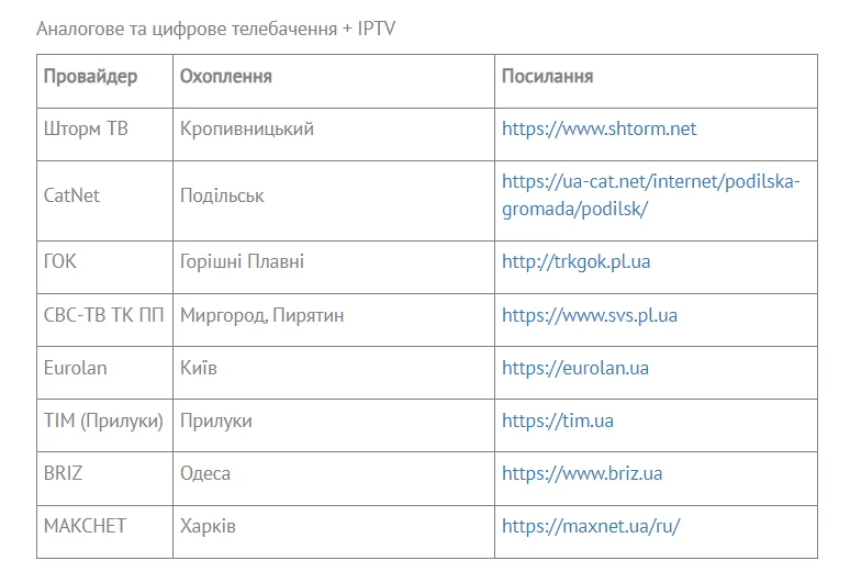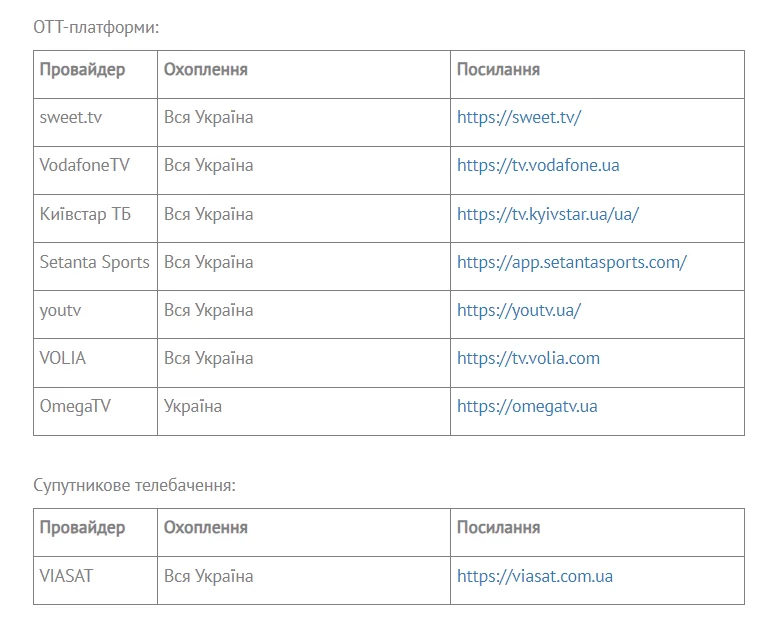 Українська Прем'єр-ліга на своєму сайті оприлюднила список провайдерів, що транслюватимуть УПЛ ТБ.