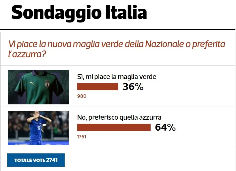 Підтримали наставника і більшість уболівальників та журналістів. Тамтешня преса іронізувала, як команда, яка носить прізвисько "Скуадра Адзурра" (що в перекладі означає "блакитна") може проміняти його на болотяний. Туринське видання Tuttosport провело опитування серед своїх читачів, і виявилося, що більшості тіфозі не до вподоби такі нововведення – проти зеленої форми проголосували 64% респондентів.