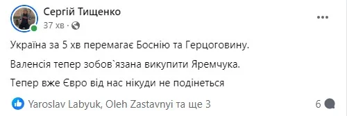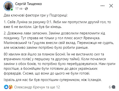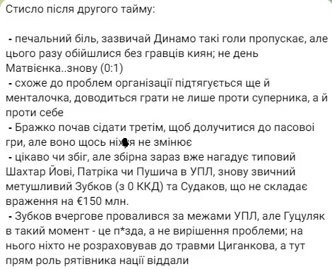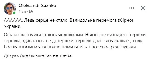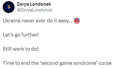 Ну а висновок такий: "Україні ніколи не буває легко. Йдемо далі. Ще варто попрацювати. Час покінчити із "синдромом другої гри". Не підведи, головна командо!