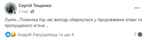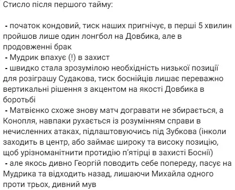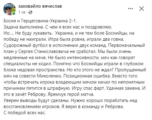 Агент, менеджер та експерт В'ячеслав Заховайло зазначає: "Игра была ровна...". І далі по тексту.