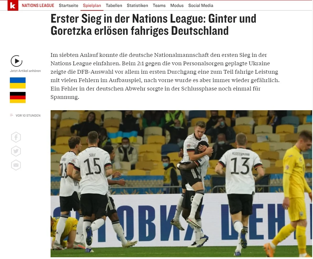 Kicker: Перша перемога в Лізі націй – Гінтер і Горетцка рятують хитку Німеччину