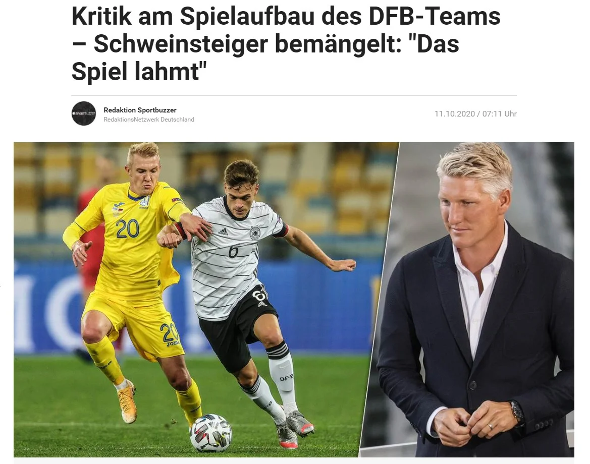 Перемога над Україною зовсім трішки зменшила рівень критики Йоахіма Льова. Німецька преса продовжує бомбити національну збірну, однак підбирає м'якші формулювання, ніж до виїзду в Київ. Журналіст Sportbuzzer Хайко Остендорп підтримує загальну тенденцію та переконує, що експерименти мають припинитися: