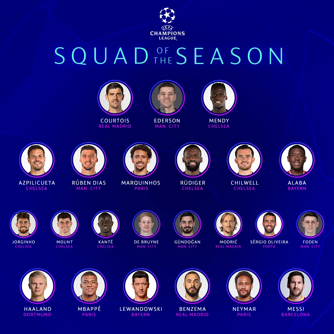 На своїх офіційних ресурсах УЄФА опублікував символічну збірну ЛЧ, яка складається з 23 футболістів. Найбільше представників делегував у команду Челсі – 7. Також варто зауважити, що у списку немає Кріштіану Роналду з Ювентуса.
