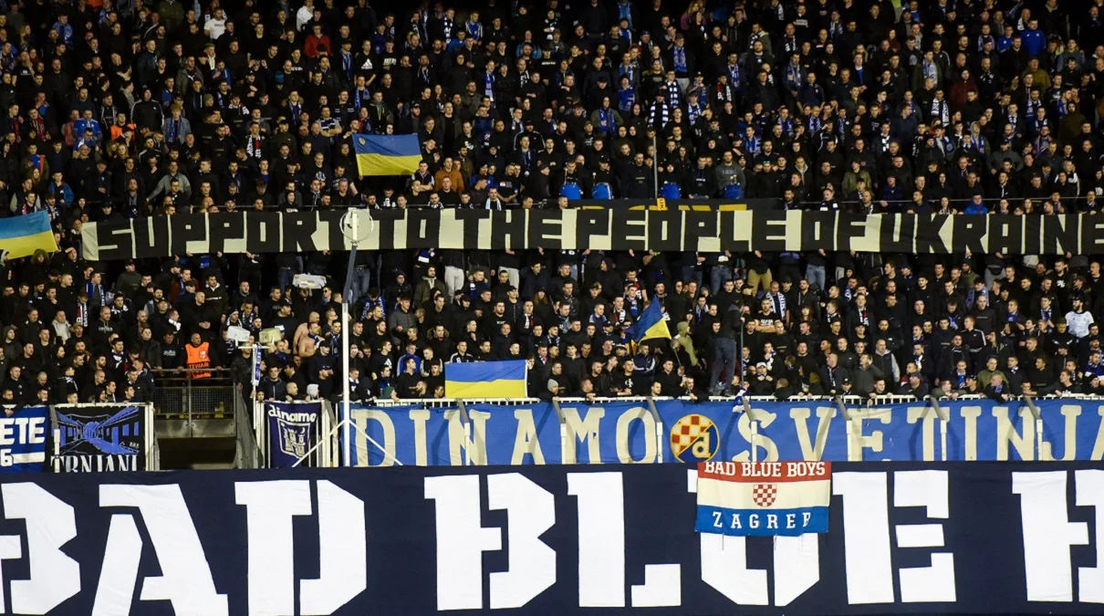 Фанати Динамо Загреб з прапорами України / Sportske novosti