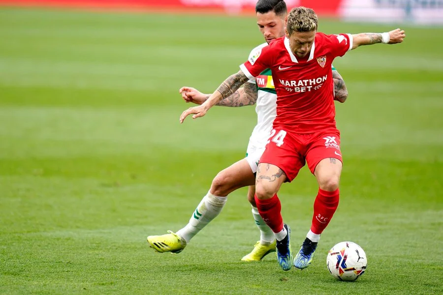 Після відпочинку гра частково вирівнялась, а в середині другої сорокап'ятихвилинки Ельче вдалось вийти вперед: Гуті з району одинадцятиметрової позначки мало не порвав сітку. Не дозволивши оговтатись супернику, господарі за сім хвилин подвоїли перевагу: Гвідо Карільйо після навісу зі штрафного вдало закрутив сферу у кут воріт. Вже у доданий час де Йонг, після пострілу партнера з дальної відстані, зумів головою змінити траекторію польоту м'ячі і скоротити рахунок. Однак, на більше севільців не вистачило.