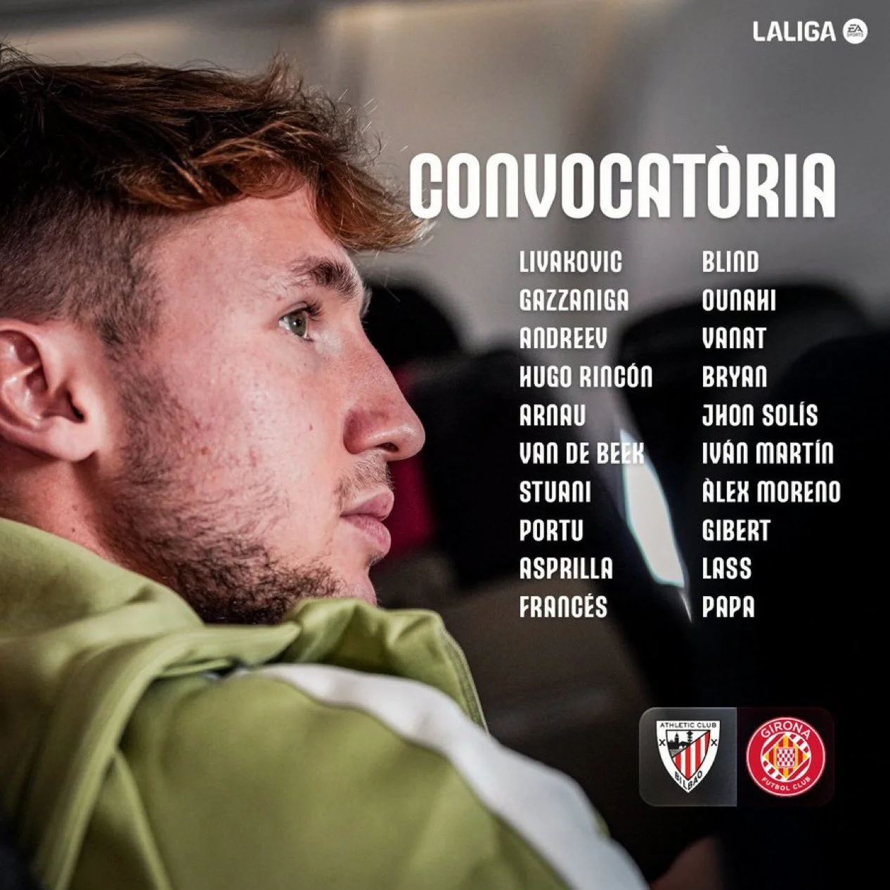 Жирона оголосила заявку команди на гру проти Атлетіка з Більбао в рамках 6-го туру Ла Ліги.