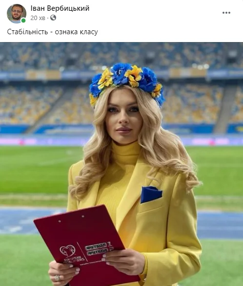 Колишній автор Футбол 24 Іван Вербицький прикрашає сумний факт світлиною чарівної Влади Зінченко.