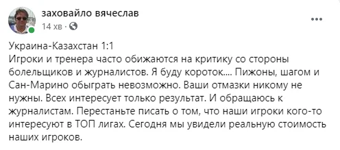 Агент, менеджер та експерт В'ячеслав Заховайло: "Сьогодні ми побачили реальну вартість наших гравців".
