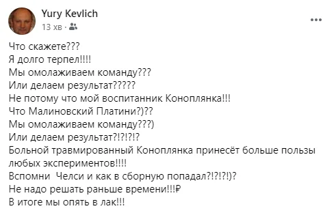 У Юрія Кевліча, першого тренера Євгена Коноплянки, своя правда.