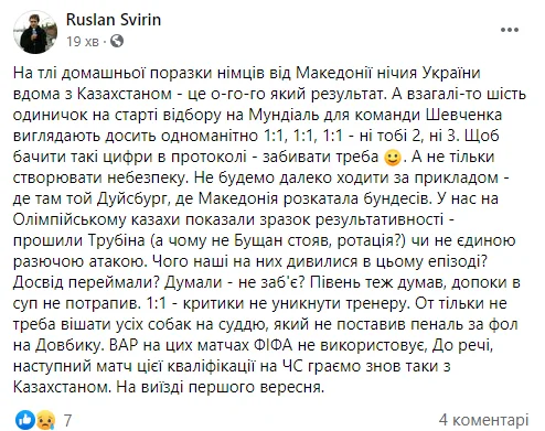 Спортивний журналіст Руслан Свірін підходить по-філософськи: "Півень теж думав, допоки в суп не потрапив".