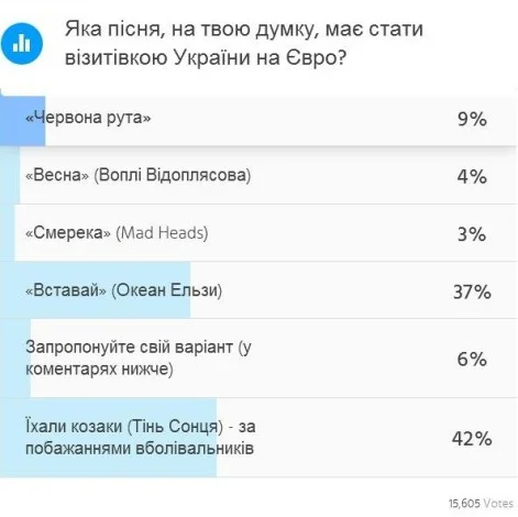 З 16 по 20 грудня українські вболівальники голосували за пісню, яка стане музичною візитівкою національної збірної на Євро-2016 та лунатиме перед оголошенням складу команди на стадіонах Франції.