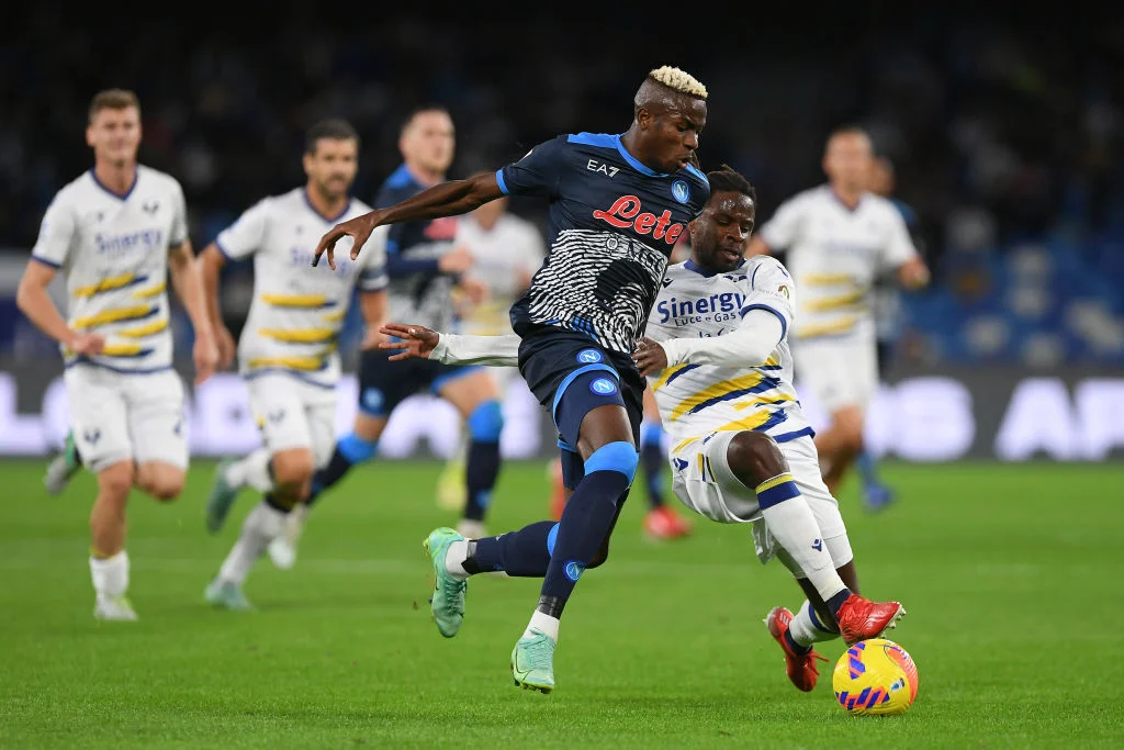 Наполі у паралельній зустрічі приймав Верону, у якої роззабивався Сімеоне. Тиждень тому він відвантажив два голи у ворота Юве, а на 13-й хвилині звітньої зустрічі Джованні забив і партенопейцям – син Ель Чоло замкнув флангову передачу від Барака на ближню стійку. Втім, всього через п'ять хвилини господарі зрівняли внаслідок вривання Ді Лоренцо на правий край штрафного й удару в дальній нижній. 1:1! Після цього команди розмінялись кількома моментами, найгостріший з яких змарнував Осімхен – на 42-й хвилині він влучив у стійку.