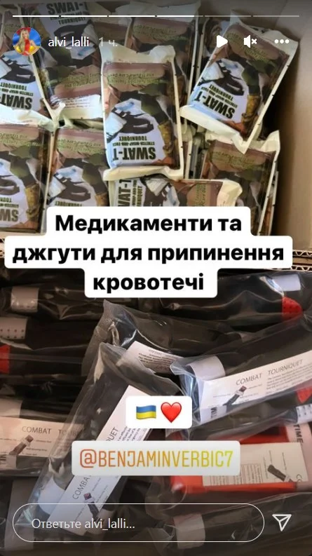 "Дрон з тепловізором їде в Україну, щоб допомогти нашим воїнам скоріше здобути перемогу", – написала Альвіна у Instagram. Окрім дрона, українська армія отримає від Вербіча медикаменти та джгути для припинення кровотечі.